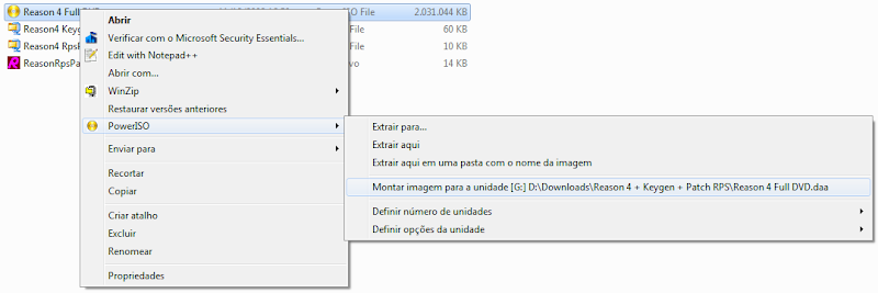 Para emularem, basta baixarem e instalarem o PowerISO. Depois de instalarem o Reason, sigam os passos conforme a imagem a baixo, para emularem. E depois abram o programa normalmente...
